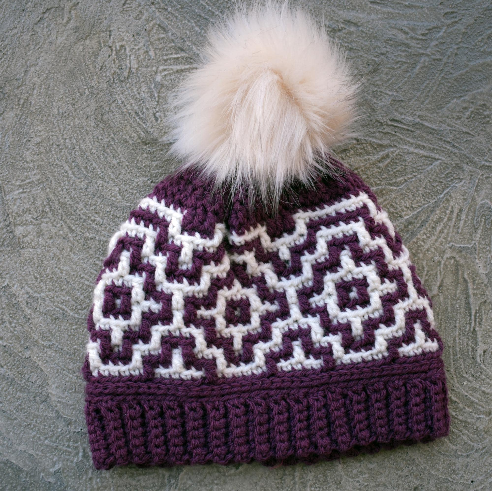 Introducing the Mosaic Beanie in beautiful jewel tone hues. This is a medium weight hat that can be worn when your on the go, running errands or enjoying a walk on a crisp Fall or Winter day. Faux fur pom is optional. Adult Pom's are 5 inches in diameter. Hat features unique color combinations that emphasize the mosaic design, ensuring unparalleled style and individuality. Hand-crocheted for ultimate coziness and warmth, yarn has a stretchy fit, ensuring a comfortable fit.