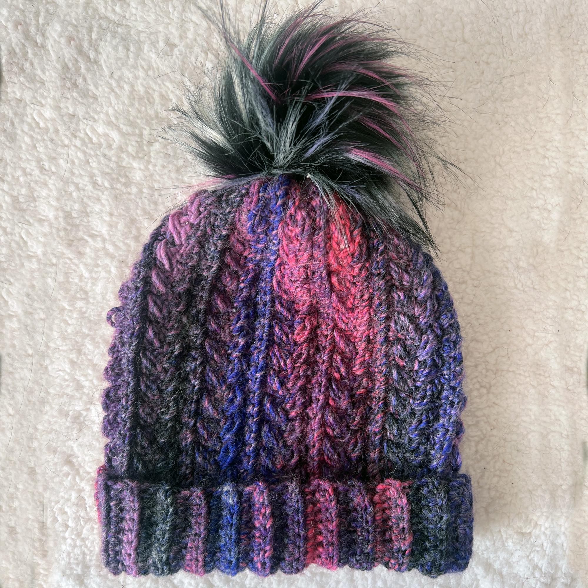 Indulge in this stylish snowy wheat pattern with fold up cuff for extra warmth. Each hat is meticulously crafted. Color: Vivid Violet multicolor. These hats are truly one of a kind, offering both warmth and style in equal measure. Elevate your winter wardrobe with a touch of handmade luxury – because when it comes to comfort and elegance, our hats stand apart.